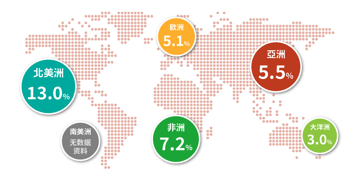 糖尿病足溃疡在全球的盛行率约为6.3%,各洲比率则为:北美洲13.0%、非洲7.2%、亚洲5.5%、欧洲5.1%,大洋洲则为3.0%3。DFU为个案所带来的生理和心理影响,以及对全球医疗系统的负担皆不可忽视,若未及时治疗,足部溃疡可能进一步造成感染、坏疽,严重者甚至需要截肢2。