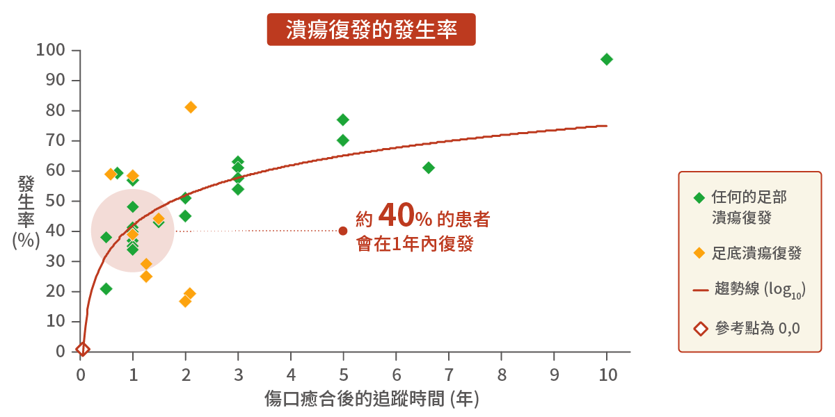 DFU治癒後,約40%的患者會在1年內復發,且近60%的患者在3年內將再次受到DFU的影響5。